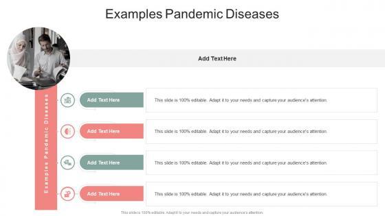 Presenting our innovatively-designed set of slides titled Examples Pandemic Diseases In Powerpoint And Google Slides Cpb. This completely editable PowerPoint graphic exhibits Examples Pandemic Diseases that will help you convey the message impactfully. It can be accessed with Google Slides and is available in both standard screen and widescreen aspect ratios. Apart from this, you can download this well-structured PowerPoint template design in different formats like PDF, JPG, and PNG. So, click the download button now to gain full access to this PPT design. Our Examples Pandemic Diseases In Powerpoint And Google Slides Cpb are topically designed to provide an attractive backdrop to any subject. Use them to look like a presentation pro.
