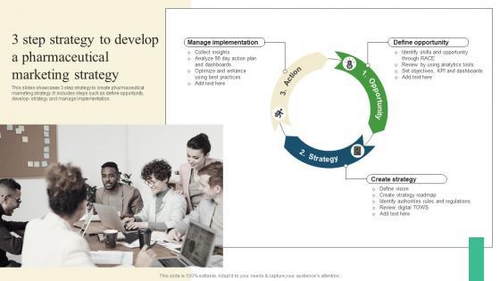 This slides showcases 3 step strategy to create pharmaceutical marketing strategy. It includes steps such as define opportunity, develop strategy and manage implementation. Want to ace your presentation in front of a live audience Our 3 Step Strategy To Develop Pharmaceutical Promotional Strategies To Drive Business Sales Background Pdf can help you do that by engaging all the users towards you. Slidegeeks experts have put their efforts and expertise into creating these impeccable powerpoint presentations so that you can communicate your ideas clearly. Moreover, all the templates are customizable, and easy to edit and downloadable. Use these for both personal and commercial use. This slides showcases 3 step strategy to create pharmaceutical marketing strategy. It includes steps such as define opportunity, develop strategy and manage implementation.