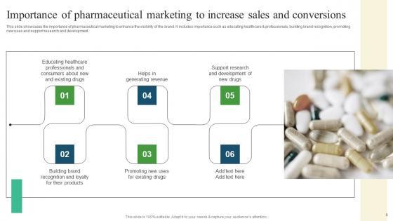 This slide showcases the importance of pharmaceutical marketing to enhance the visibility of the brand. It includes importance such as educating healthcare and professionals, building brand recognition, promoting new uses and support research and development. Welcome to our selection of the Importance Of Pharmaceutical Marketing Pharmaceutical Promotional Strategies To Drive Busines Rules Pdf. These are designed to help you showcase your creativity and bring your sphere to life. Planning and Innovation are essential for any business that is just starting out. This collection contains the designs that you need for your everyday presentations. All of our PowerPoints are 100 percent editable, so you can customize them to suit your needs. This multi purpose template can be used in various situations. Grab these presentation templates today This slide showcases the importance of pharmaceutical marketing to enhance the visibility of the brand. It includes importance such as educating healthcare and professionals, building brand recognition, promoting new uses and support research and development.