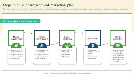 This slide showcases the five step process to develop a pharmaceutical marketing plan. It includes process steps such as identify target market, perform market research, develop positioning, create plan and monitor and analyze. Whether you have daily or monthly meetings, a brilliant presentation is necessary. Steps To Build Pharmaceutical Promotional Strategies To Drive Business Sales Formats Pdf can be your best option for delivering a presentation. Represent everything in detail using Steps To Build Pharmaceutical Promotional Strategies To Drive Business Sales Formats Pdf and make yourself stand out in meetings. The template is versatile and follows a structure that will cater to your requirements. All the templates prepared by Slidegeeks are easy to download and edit. Our research experts have taken care of the corporate themes as well. So, give it a try and see the results. This slide showcases the five step process to develop a pharmaceutical marketing plan. It includes process steps such as identify target market, perform market research, develop positioning, create plan and monitor and analyze.