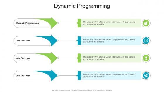 Introducing our well-designed Dynamic Programming In Powerpoint And Google Slides Cpb. This PowerPoint design presents information on topics like Dynamic Programming. As it is predesigned it helps boost your confidence level. It also makes you a better presenter because of its high-quality content and graphics. This PPT layout can be downloaded and used in different formats like PDF, PNG, and JPG. Not only this, it is available in both Standard Screen and Widescreen aspect ratios for your convenience. Therefore, click on the download button now to persuade and impress your audience. Our Dynamic Programming In Powerpoint And Google Slides Cpb are topically designed to provide an attractive backdrop to any subject. Use them to look like a presentation pro.