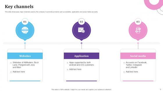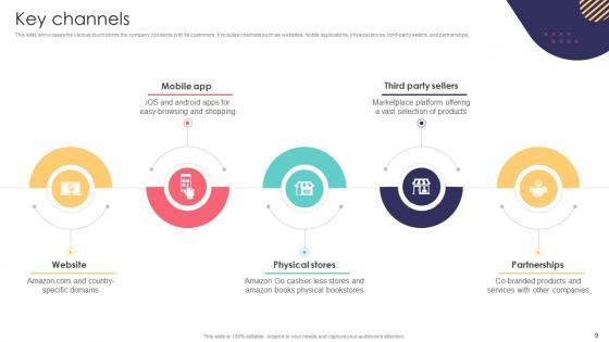 This slide showcases the various touch points the company connects with its customers. It includes channels such as websites, mobile applications, physical stores, third-party sellers, and partnerships. From laying roadmaps to briefing everything in detail, our templates are perfect for you. You can set the stage with your presentation slides. All you have to do is download these easy-to-edit and customizable templates. Key Channels E Commerce Company Business Model BMC SS V will help you deliver an outstanding performance that everyone would remember and praise you for. Do download this presentation today. This slide showcases the various touch points the company connects with its customers. It includes channels such as websites, mobile applications, physical stores, third-party sellers, and partnerships.
