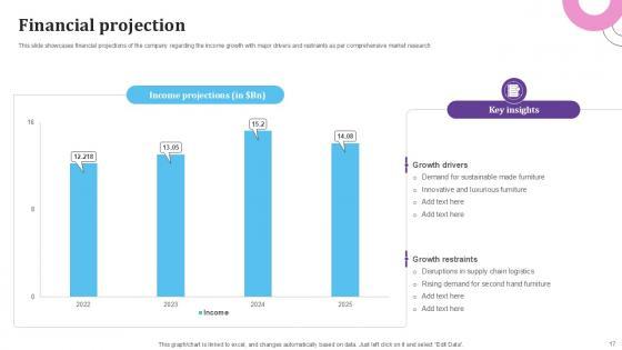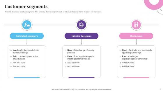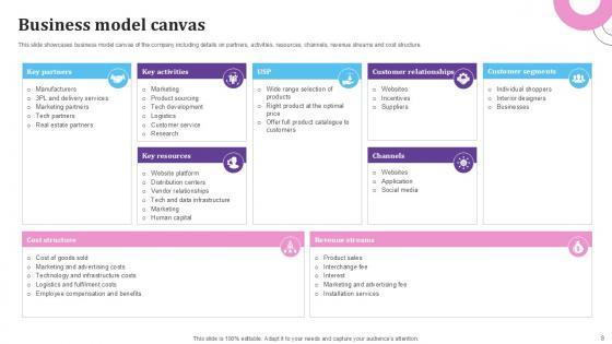 This twenty four-slide E Commerce Platform For Furniture Business Model Ppt Presentation BMC V your content ready tool to impress the stakeholders with your business planning and its manner of execution. Showcase your ideas and how you plan to make them real in detail with this PPT Template Bundle. The slides have the conceptual bandwidth to present the crucial aspects of your plan, such as funding, marketing, resource allocation, timeline, roadmap, and more. When you present your plans with this PPT Layout, the stakeholders are sure to come on board because you will be able to present a succinct, thought-out, winning project. Download this Complete Deck now to take control into your hands. The 100 percent customizable offer is just too good to be resisted. Our E Commerce Platform For Furniture Business Model Ppt Presentation BMC V are topically designed to provide an attractive backdrop to any subject. Use them to look like a presentation pro.