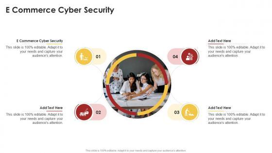 Introducing our well-designed E Commerce Cyber Security In Powerpoint And Google Slides Cpb. This PowerPoint design presents information on topics like E Commerce Cyber Security. As it is predesigned it helps boost your confidence level. It also makes you a better presenter because of its high-quality content and graphics. This PPT layout can be downloaded and used in different formats like PDF, PNG, and JPG. Not only this, it is available in both Standard Screen and Widescreen aspect ratios for your convenience. Therefore, click on the download button now to persuade and impress your audience. Our E Commerce Cyber Security In Powerpoint And Google Slides Cpb are topically designed to provide an attractive backdrop to any subject. Use them to look like a presentation pro.