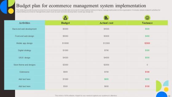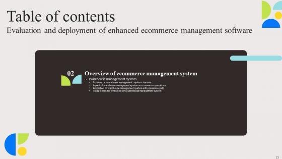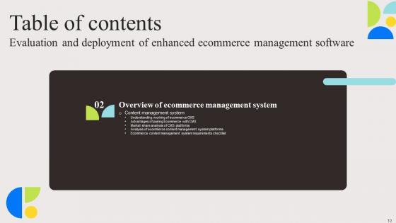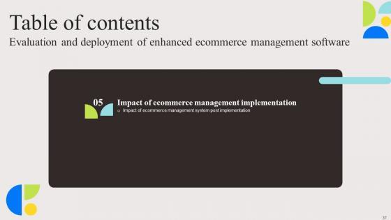 Use this Evaluation And Deployment Of Enhanced Ecommerce Management Software Complete Deck to ensure the business world gets to know you as a presentation expert with tremendous recall value. With its focus on providing the worlds best designs to highlight business ideas that have the potential to change the world, this PPT Template is sure to win you clients. The complete deck in Fifty six slides is a compendium of information, structured in a manner that provides the best framework for a presentation. Use this completely editable and customizable presentation to make an impact and improve your order book. Download now. Our Evaluation And Deployment Of Enhanced Ecommerce Management Software Complete Deck are topically designed to provide an attractive backdrop to any subject. Use them to look like a presentation pro.