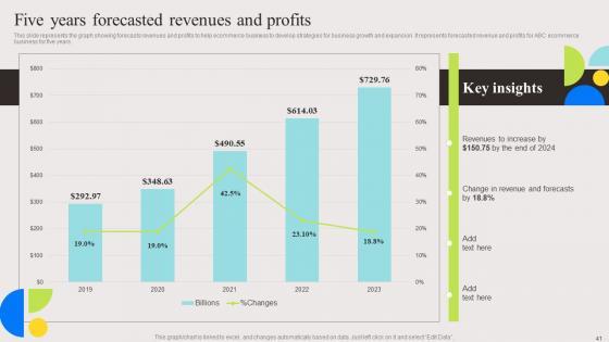 This slide represents the graph showing forecasts revenues and profits to help ecommerce business to develop strategies for business growth and expansion. It represents forecasted revenue and profits for ABC ecommerce business for five years.Crafting an eye-catching presentation has never been more straightforward. Let your presentation shine with this tasteful yet straightforward Five Years Forecasted Revenues And Profits Deploying Ecommerce Order Management Software Diagrams PDF template. It offers a minimalistic and classy look that is great for making a statement. The colors have been employed intelligently to add a bit of playfulness while still remaining professional. Construct the ideal Five Years Forecasted Revenues And Profits Deploying Ecommerce Order Management Software Diagrams PDF that effortlessly grabs the attention of your audience. Begin now and be certain to wow your customers.