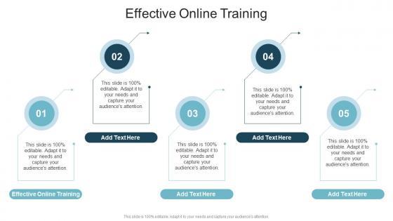 Introducing our well designed Effective Online Training In Powerpoint And Google Slides Cpb This PowerPoint design presents information on topics like Effective Online Training As it is predesigned it helps boost your confidence level. It also makes you a better presenter because of its high quality content and graphics. This PPT layout can be downloaded and used in different formats like PDF, PNG, and JPG. Not only this, it is available in both Standard Screen and Widescreen aspect ratios for your convenience. Therefore, click on the download button now to persuade and impress your audience. Our Effective Online Training In Powerpoint And Google Slides Cpb are topically designed to provide an attractive backdrop to any subject. Use them to look like a presentation pro.