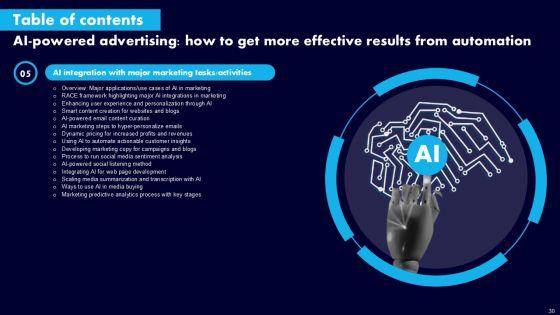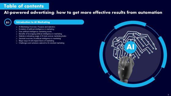 This Table Of Contents AI Powered Advertising How To Get More Effective Results From Automation Microsoft PDF from Slidegeeks makes it easy to present information on your topic with precision. It provides customization options, so you can make changes to the colors, design, graphics, or any other component to create a unique layout. It is also available for immediate download, so you can begin using it right away. Slidegeeks has done good research to ensure that you have everything you need to make your presentation stand out. Make a name out there for a brilliant performance.