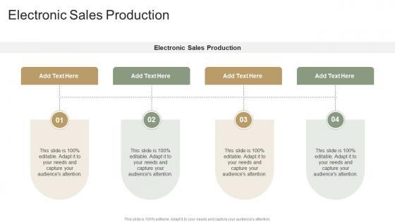 Introducing our well designed Electronic Sales Production In Powerpoint And Google Slides Cpb. This PowerPoint design presents information on topics like Electronic Sales Production. As it is predesigned it helps boost your confidence level. It also makes you a better presenter because of its high quality content and graphics. This PPT layout can be downloaded and used in different formats like PDF, PNG, and JPG. Not only this, it is available in both Standard Screen and Widescreen aspect ratios for your convenience. Therefore, click on the download button now to persuade and impress your audience. Our Electronic Sales Production In Powerpoint And Google Slides Cpb are topically designed to provide an attractive backdrop to any subject. Use them to look like a presentation pro.