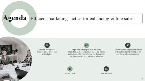 Create an editable Agenda Efficient Marketing Tactics For Enhancing Online Sales Summary Pdf that communicates your idea and engages your audience. Whether you are presenting a business or an educational presentation, pre-designed presentation templates help save time. Agenda Efficient Marketing Tactics For Enhancing Online Sales Summary Pdf is highly customizable and very easy to edit, covering many different styles from creative to business presentations. Slidegeeks has creative team members who have crafted amazing templates. So, go and get them without any delay. Our Agenda Efficient Marketing Tactics For Enhancing Online Sales Summary Pdf are topically designed to provide an attractive backdrop to any subject. Use them to look like a presentation pro.