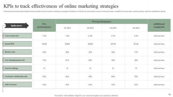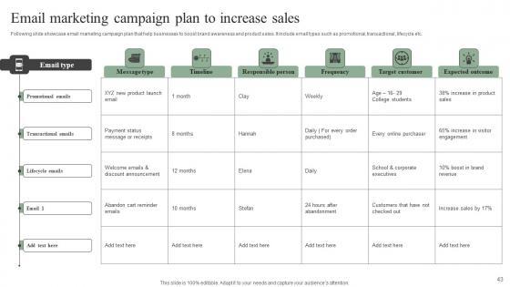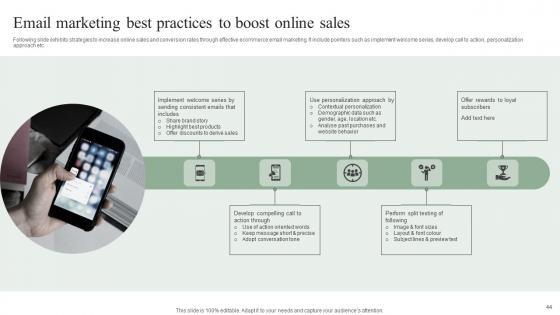 This Efficient Marketing Tactics For Enhancing Online Sales Complete Deck is designed to help you retain your audiences attention. This content-ready PowerPoint Template enables you to take your audience on a journey and share information in a way that is easier to recall. It helps you highlight the crucial parts of your work so that the audience does not get saddled with information download. This eighty four slide PPT Deck comes prepared with the graphs and charts you could need to showcase your information through visuals. You only need to enter your own data in them. Download this editable PowerPoint Theme and walk into that meeting with confidence. Our Efficient Marketing Tactics For Enhancing Online Sales Complete Deck are topically designed to provide an attractive backdrop to any subject. Use them to look like a presentation pro.