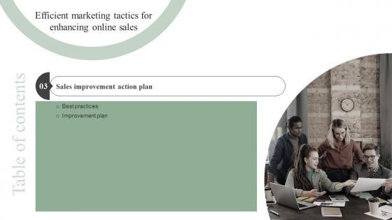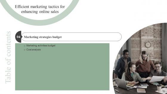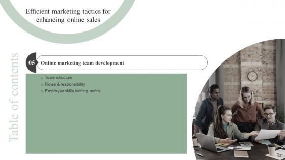 Do you have to make sure that everyone on your team knows about any specific topic I yes, then you should give Table Of Contents Efficient Marketing Tactics For Enhancing Online Sales Inspiration Pdf a try. Our experts have put a lot of knowledge and effort into creating this impeccable Table Of Contents Efficient Marketing Tactics For Enhancing Online Sales Inspiration Pdf. You can use this template for your upcoming presentations, as the slides are perfect to represent even the tiniest detail. You can download these templates from the Slidegeeks website and these are easy to edit. So grab these today Our Table Of Contents Efficient Marketing Tactics For Enhancing Online Sales Inspiration Pdf are topically designed to provide an attractive backdrop to any subject. Use them to look like a presentation pro.