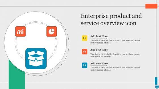 Showcasing this set of slides titled Enterprise Product And Service Overview Icon Pictures PDF. The topics addressed in these templates are Enterprise, Product Service, Overview. All the content presented in this PPT design is completely editable. Download it and make adjustments in color, background, font etc. as per your unique business setting.
