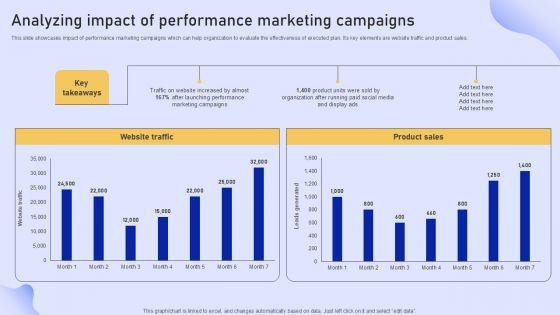 This slide showcases overview of current marketing performance that can help organization to determine issues in current promotional campaigns. Its key elements are website traffic, marketing budget and product sales. Are you in need of a template that can accommodate all of your creative concepts This one is crafted professionally and can be altered to fit any style. Use it with Google Slides or PowerPoint. Include striking photographs, symbols, depictions, and other visuals. Fill, move around, or remove text boxes as desired. Test out color palettes and font mixtures. Edit and save your work, or work with colleagues. Download Performance Based Marketing Evaluating Current Marketing Performance Of Organization Microsoft PDF and observe how to make your presentation outstanding. Give an impeccable presentation to your group and make your presentation unforgettable.