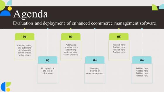 Use this Evaluation And Deployment Of Enhanced Ecommerce Management Software Complete Deck to ensure the business world gets to know you as a presentation expert with tremendous recall value. With its focus on providing the worlds best designs to highlight business ideas that have the potential to change the world, this PPT Template is sure to win you clients. The complete deck in Fifty six slides is a compendium of information, structured in a manner that provides the best framework for a presentation. Use this completely editable and customizable presentation to make an impact and improve your order book. Download now. Our Evaluation And Deployment Of Enhanced Ecommerce Management Software Complete Deck are topically designed to provide an attractive backdrop to any subject. Use them to look like a presentation pro.