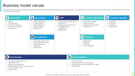 This slide provides the companys business model canvas to understand its overall business functioning. It involves key partners, key activities, USP, customer relationships, customer segments, channels, revenue streams, key resources, and cost structure. Find a pre-designed and impeccable Business Model Canvas Online Transaction Facilitator Business Model BMC SS V. The templates can ace your presentation without additional effort. You can download these easy-to-edit presentation templates to make your presentation stand out from others. So, what are you waiting for Download the template from Slidegeeks today and give a unique touch to your presentation. This slide provides the companys business model canvas to understand its overall business functioning. It involves key partners, key activities, USP, customer relationships, customer segments, channels, revenue streams, key resources, and cost structure.