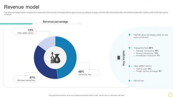 This slide showcases how the company earns revenue from the business. It includes revenue streams such as individual, business, and international transaction fees, merchant transaction fees, PayPal credit, and foreign currency exchange. Find highly impressive Revenue Model Online Transaction Facilitator Business Model BMC SS V on Slidegeeks to deliver a meaningful presentation. You can save an ample amount of time using these presentation templates. No need to worry to prepare everything from scratch because Slidegeeks experts have already done a huge research and work for you. You need to download Revenue Model Online Transaction Facilitator Business Model BMC SS V for your upcoming presentation. All the presentation templates are 100 percent editable and you can change the color and personalize the content accordingly. Download now This slide showcases how the company earns revenue from the business. It includes revenue streams such as individual, business, and international transaction fees, merchant transaction fees, PayPal credit, and foreign currency exchange.