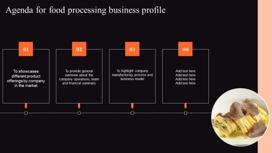Find highly impressive Agenda For Food Processing Business Profile Pictures Pdf on Slidegeeks to deliver a meaningful presentation. You can save an ample amount of time using these presentation templates. No need to worry to prepare everything from scratch because Slidegeeks experts have already done a huge research and work for you. You need to download Agenda For Food Processing Business Profile Pictures Pdf for your upcoming presentation. All the presentation templates are 100 percent editable and you can change the color and personalize the content accordingly. Download now Our Agenda For Food Processing Business Profile Pictures Pdf are topically designed to provide an attractive backdrop to any subject. Use them to look like a presentation pro.