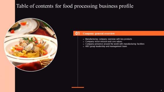 Food processing business profile PowerPoint Presentation Templates and Google Slides