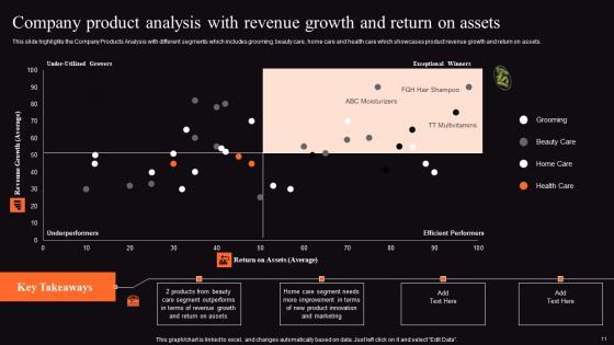 This slide highlights the Company Products Analysis with different segments which includes grooming, beauty care, home care and health care which showcases product revenue growth and return on assets. The Food Processing Business Profile Company Product Analysis With Revenue Growth Icons Pdf is a compilation of the most recent design trends as a series of slides. It is suitable for any subject or industry presentation, containing attractive visuals and photo spots for businesses to clearly express their messages. This template contains a variety of slides for the user to input data, such as structures to contrast two elements, bullet points, and slides for written information. Slidegeeks is prepared to create an impression. This slide highlights the Company Products Analysis with different segments which includes grooming, beauty care, home care and health care which showcases product revenue growth and return on assets.