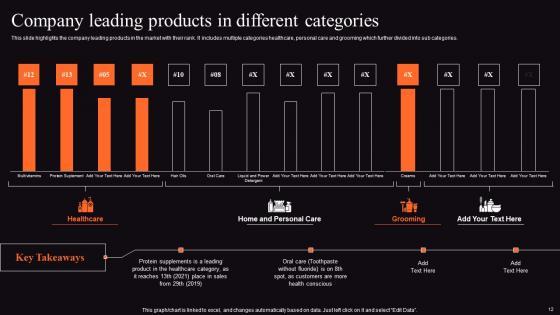 This slide highlights the company leading products in the market with their rank. It includes multiple categories healthcare, personal care and grooming which further divided into sub categories. Welcome to our selection of the Food Processing Business Profile Company Leading Products In Different Information Pdf. These are designed to help you showcase your creativity and bring your sphere to life. Planning and Innovation are essential for any business that is just starting out. This collection contains the designs that you need for your everyday presentations. All of our PowerPoints are 100 percent editable, so you can customize them to suit your needs. This multi purpose template can be used in various situations. Grab these presentation templates today This slide highlights the company leading products in the market with their rank. It includes multiple categories healthcare, personal care and grooming which further divided into sub categories.