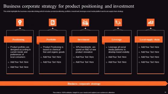 This slide highlights the business corporate strategy which includes product positioning, portfolio, investment, leverage social media platform and local supply chain strategy. Crafting an eye catching presentation has never been more straightforward. Let your presentation shine with this tasteful yet straightforward Food Processing Business Profile Business Corporate Strategy Themes Pdf template. It offers a minimalistic and classy look that is great for making a statement. The colors have been employed intelligently to add a bit of playfulness while still remaining professional. Construct the ideal Food Processing Business Profile Business Corporate Strategy Themes Pdf that effortlessly grabs the attention of your audience Begin now and be certain to wow your customers This slide highlights the business corporate strategy which includes product positioning, portfolio, investment, leverage social media platform and local supply chain strategy.