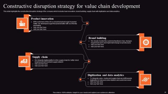 This slide highlights the constructive disruption strategy of the company which includes lean innovation, brand building, supply chain with digitization and data analytics.This Food Processing Business Profile Constructive Disruption Strategy Microsoft Pdf from Slidegeeks makes it easy to present information on your topic with precision. It provides customization options, so you can make changes to the colors, design, graphics, or any other component to create a unique layout. It is also available for immediate download, so you can begin using it right away. Slidegeeks has done good research to ensure that you have everything you need to make your presentation stand out. Make a name out there for a brilliant performance. This slide highlights the constructive disruption strategy of the company which includes lean innovation, brand building, supply chain with digitization and data analytics.
