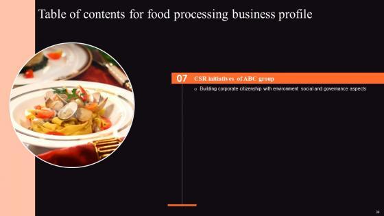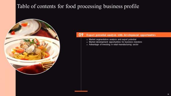 Present like a pro with Table Of Contents For Food Processing Business Profile Ideas Pdf Create beautiful presentations together with your team, using our easy to use presentation slides. Share your ideas in real time and make changes on the fly by downloading our templates. So whether you are in the office, on the go, or in a remote location, you can stay in sync with your team and present your ideas with confidence. With Slidegeeks presentation got a whole lot easier. Grab these presentations today. Our Table Of Contents For Food Processing Business Profile Ideas Pdf are topically designed to provide an attractive backdrop to any subject. Use them to look like a presentation pro.