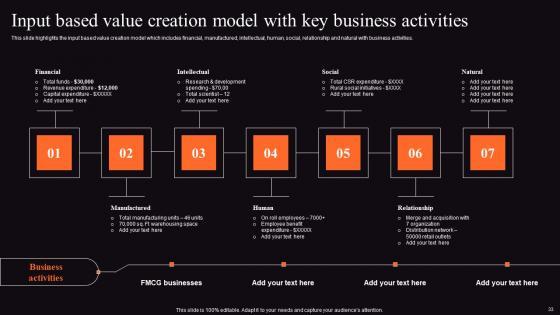 This slide highlights the input based value creation model which includes financial, manufactured, intellectual, human, social, relationship and natural with business activities. Take your projects to the next level with our ultimate collection of Food Processing Business Profile Input Based Value Creation Model Mockup Pdf. Slidegeeks has designed a range of layouts that are perfect for representing task or activity duration, keeping track of all your deadlines at a glance. Tailor these designs to your exact needs and give them a truly corporate look with your own brand colors they will make your projects stand out from the rest This slide highlights the input based value creation model which includes financial, manufactured, intellectual, human, social, relationship and natural with business activities.