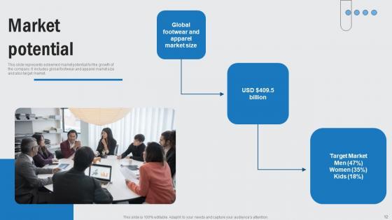 This slide represents esteemed market potential for the growth of the company. It includes global footwear and apparel market size and also target market. If you are looking for a format to display your unique thoughts, then the professionally designed Market Potential Footwear Company Funding Elevator Pitch Deck Brochure Pdf is the one for you. You can use it as a Google Slides template or a PowerPoint template. Incorporate impressive visuals, symbols, images, and other charts. Modify or reorganize the text boxes as you desire. Experiment with shade schemes and font pairings. Alter, share or cooperate with other people on your work. Download Market Potential Footwear Company Funding Elevator Pitch Deck Brochure Pdf and find out how to give a successful presentation. Present a perfect display to your team and make your presentation unforgettable. This slide represents esteemed market potential for the growth of the company. It includes global footwear and apparel market size and also target market.