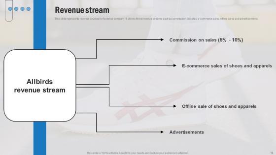 This slide represents revenue sources for footwear company. It shows three revenue streams such as commission on sales, e-commerce sales, offline sales and advertisements. Coming up with a presentation necessitates that the majority of the effort goes into the content and the message you intend to convey. The visuals of a PowerPoint presentation can only be effective if it supplements and supports the story that is being told. Keeping this in mind our experts created Revenue Stream Footwear Company Funding Elevator Pitch Deck Inspiration Pdf to reduce the time that goes into designing the presentation. This way, you can concentrate on the message while our designers take care of providing you with the right template for the situation. This slide represents revenue sources for footwear company. It shows three revenue streams such as commission on sales, e-commerce sales, offline sales and advertisements.