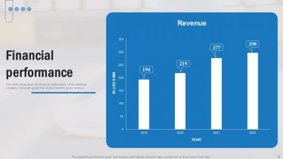 This slide showcases the financial performance of the footwear company. It include graph that shows monthly gross revenue. From laying roadmaps to briefing everything in detail, our templates are perfect for you. You can set the stage with your presentation slides. All you have to do is download these easy-to-edit and customizable templates. Financial Performance Footwear Company Funding Elevator Pitch Deck Background Pdf will help you deliver an outstanding performance that everyone would remember and praise you for. Do download this presentation today. This slide showcases the financial performance of the footwear company. It include graph that shows monthly gross revenue.