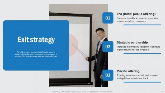 The slide provides most profitable feasible ways for investors to exit from their investment in the company. It includes IPO, strategic partnership and private offerings. Get a simple yet stunning designed Exit Strategy Footwear Company Funding Elevator Pitch Deck Infographics Pdf. It is the best one to establish the tone in your meetings. It is an excellent way to make your presentations highly effective. So, download this PPT today from Slidegeeks and see the positive impacts. Our easy-to-edit Exit Strategy Footwear Company Funding Elevator Pitch Deck Infographics Pdfcan be your go-to option for all upcoming conferences and meetings. So, what are you waiting for Grab this template today. The slide provides most profitable feasible ways for investors to exit from their investment in the company. It includes IPO, strategic partnership and private offerings.
