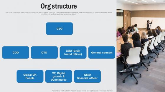 This slide showcases the organization structure of an footwear company. It includes Chief executive officer, chief operating officer, chief underwriting officer, chief Marketing officer and chief technology officer. Are you in need of a template that can accommodate all of your creative concepts This one is crafted professionally and can be altered to fit any style. Use it with Google Slides or PowerPoint. Include striking photographs, symbols, depictions, and other visuals. Fill, move around, or remove text boxes as desired. Test out color palettes and font mixtures. Edit and save your work, or work with colleagues. Download Org Structure Footwear Company Funding Elevator Pitch Deck Portrait Pdf and observe how to make your presentation outstanding. Give an impeccable presentation to your group and make your presentation unforgettable. This slide showcases the organization structure of an footwear company. It includes Chief executive officer, chief operating officer, chief underwriting officer, chief Marketing officer and chief technology officer.
