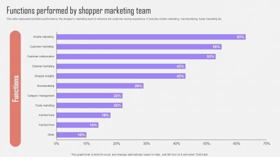 This slide represents functions performed by the shoppers marketing team to enhance the customer buying experience. It includes mobile marketing, merchandizing, trade marketing etc. If your project calls for a presentation, then Slidegeeks is your go to partner because we have professionally designed, easy to edit templates that are perfect for any presentation. After downloading, you can easily edit Shopper And Client Marketing Plan To Boost Sales Functions Performed By Shopper Marketing Team Ideas PDF and make the changes accordingly. You can rearrange slides or fill them with different images. Check out all the handy templates