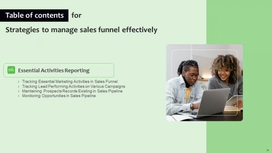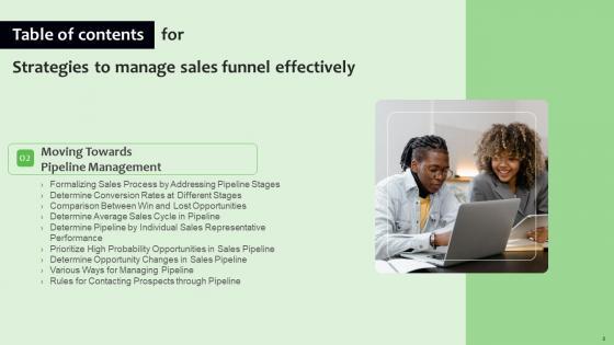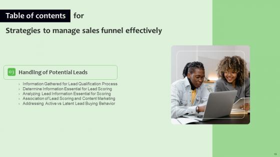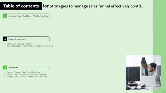 Explore a selection of the finest Strategies To Manage Sales Funnel Effectively Table Of Contents Sample Pdf here. With a plethora of professionally designed and pre-made slide templates, you can quickly and easily find the right one for your upcoming presentation. You can use our Strategies To Manage Sales Funnel Effectively Table Of Contents Sample Pdf to effectively convey your message to a wider audience. Slidegeeks has done a lot of research before preparing these presentation templates. The content can be personalized and the slides are highly editable. Grab templates today from Slidegeeks. Our Strategies To Manage Sales Funnel Effectively Table Of Contents Sample Pdf are topically designed to provide an attractive backdrop to any subject. Use them to look like a presentation pro.