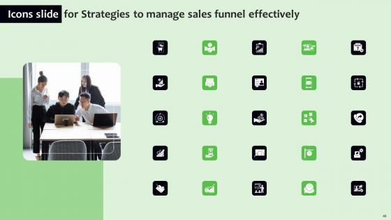 Use this actionable PPT Slide to determine the business plan for your organization as you just about are ready to get into the zone of some comfort in terms operations. This Strategies To Manage Sales Funnel Effectively Ppt Powerpoint Presentation Complete Deck comprises three sections to help you evaluate the roadmap of where you are going and determine whether course correction is needed. The sixty-Slide complete deck also provides you a framework on how to go about making a presentation that is both fluid and solid at the same time. The presentation template is also equipped to do this with its 100 precent editable and customizable capability. Download now. Our Strategies To Manage Sales Funnel Effectively Ppt Powerpoint Presentation Complete Deck are topically designed to provide an attractive backdrop to any subject. Use them to look like a presentation pro.