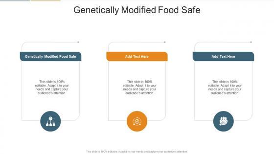 Introducing our well designed Genetically Modified Food Safe In Powerpoint And Google Slides Cpb. This PowerPoint design presents information on topics like Genetically Modified Food Safe. As it is predesigned it helps boost your confidence level. It also makes you a better presenter because of its high quality content and graphics. This PPT layout can be downloaded and used in different formats like PDF, PNG, and JPG. Not only this, it is available in both Standard Screen and Widescreen aspect ratios for your convenience. Therefore, click on the download button now to persuade and impress your audience. Our Genetically Modified Food Safe In Powerpoint And Google Slides Cpb are topically designed to provide an attractive backdrop to any subject. Use them to look like a presentation pro.