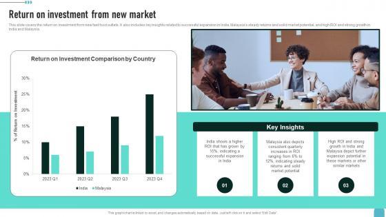 This slide covers the return on investment from new fast food outlets. It also includes key insights related to successful expansion in India, Malaysias steady returns and solid market potential, and high ROI and strong growth in India and Malaysia.Want to ace your presentation in front of a live audience Our Return On Investment From New Market Enhancing Global Presence Designs Pdf can help you do that by engaging all the users towards you.. Slidegeeks experts have put their efforts and expertise into creating these impeccable powerpoint presentations so that you can communicate your ideas clearly. Moreover, all the templates are customizable, and easy-to-edit and downloadable. Use these for both personal and commercial use. This slide covers the return on investment from new fast food outlets. It also includes key insights related to successful expansion in India, Malaysias steady returns and solid market potential, and high ROI and strong growth in India and Malaysia.