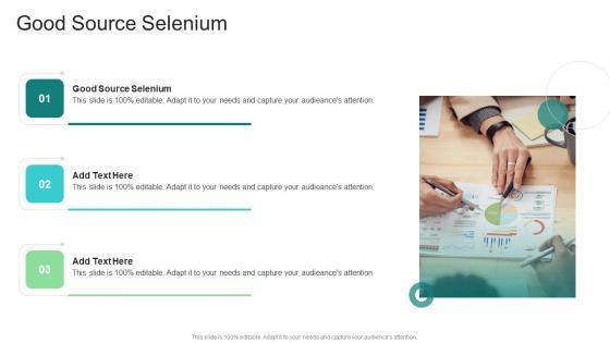 Presenting our innovatively-designed set of slides titled Good Source Selenium In Powerpoint And Google Slides Cpb. This completely editable PowerPoint graphic exhibits Good Source Selenium that will help you convey the message impactfully. It can be accessed with Google Slides and is available in both standard screen and widescreen aspect ratios. Apart from this, you can download this well-structured PowerPoint template design in different formats like PDF, JPG, and PNG. So, click the download button now to gain full access to this PPT design. Our Good Source Selenium In Powerpoint And Google Slides Cpb are topically designed to provide an attractive backdrop to any subject. Use them to look like a presentation pro.