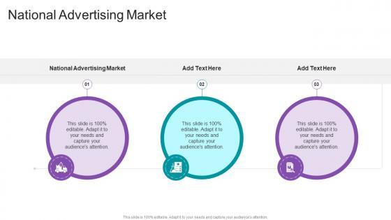 Introducing our well-designed National Advertising Market In Powerpoint And Google Slides Cpb. This PowerPoint design presents information on topics like National Advertising Market. As it is predesigned it helps boost your confidence level. It also makes you a better presenter because of its high-quality content and graphics. This PPT layout can be downloaded and used in different formats like PDF, PNG, and JPG. Not only this, it is available in both Standard Screen and Widescreen aspect ratios for your convenience. Therefore, click on the download button now to persuade and impress your audience. Our National Advertising Market In Powerpoint And Google Slides Cpb are topically designed to provide an attractive backdrop to any subject. Use them to look like a presentation pro.