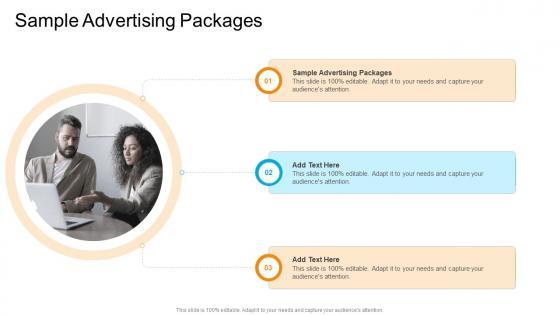 Presenting our innovatively-designed set of slides titled Sample Advertising Packages In Powerpoint And Google Slides Cpb. This completely editable PowerPoint graphic exhibits Sample Advertising Packages that will help you convey the message impactfully. It can be accessed with Google Slides and is available in both standard screen and widescreen aspect ratios. Apart from this, you can download this well-structured PowerPoint template design in different formats like PDF, JPG, and PNG. So, click the download button now to gain full access to this PPT design. Our Sample Advertising Packages In Powerpoint And Google Slides Cpb are topically designed to provide an attractive backdrop to any subject. Use them to look like a presentation pro.
