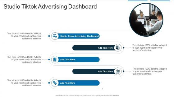 Introducing our well-designed Studio Tiktok Advertising Dashboard In Powerpoint And Google Slides Cpb This PowerPoint design presents information on topics like Studio Tiktok Advertising Dashboard As it is predesigned it helps boost your confidence level. It also makes you a better presenter because of its high-quality content and graphics. This PPT layout can be downloaded and used in different formats like PDF, PNG, and JPG. Not only this, it is available in both Standard Screen and Widescreen aspect ratios for your convenience. Therefore, click on the download button now to persuade and impress your audience. Our Studio Tiktok Advertising Dashboard In Powerpoint And Google Slides Cpb are topically designed to provide an attractive backdrop to any subject. Use them to look like a presentation pro.