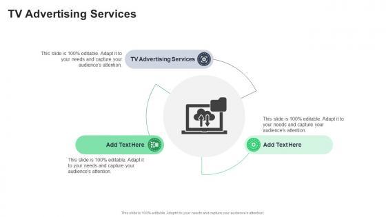Introducing our well designed Tv Advertising Services In Powerpoint And Google Slides Cpb. This PowerPoint design presents information on topics like Tv Advertising Services. As it is predesigned it helps boost your confidence level. It also makes you a better presenter because of its high quality content and graphics. This PPT layout can be downloaded and used in different formats like PDF, PNG, and JPG. Not only this, it is available in both Standard Screen and Widescreen aspect ratios for your convenience. Therefore, click on the download button now to persuade and impress your audience. Our Tv Advertising Services In Powerpoint And Google Slides Cpb are topically designed to provide an attractive backdrop to any subject. Use them to look like a presentation pro.