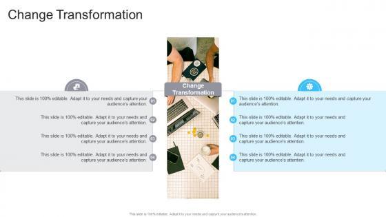 Presenting our innovatively-designed set of slides titled Change Transformation In Powerpoint And Google Slides Cpb. This completely editable PowerPoint graphic exhibits Change Transformation that will help you convey the message impactfully. It can be accessed with Google Slides and is available in both standard screen and widescreen aspect ratios. Apart from this, you can download this well-structured PowerPoint template design in different formats like PDF, JPG, and PNG. So, click the download button now to gain full access to this PPT design. Our Change Transformation In Powerpoint And Google Slides Cpb are topically designed to provide an attractive backdrop to any subject. Use them to look like a presentation pro.