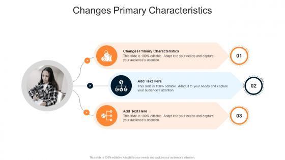 Introducing our well designed Changes Primary Characteristics In Powerpoint And Google Slides Cpb. This PowerPoint design presents information on topics like Changes Primary Characteristics. As it is predesigned it helps boost your confidence level. It also makes you a better presenter because of its high quality content and graphics. This PPT layout can be downloaded and used in different formats like PDF, PNG, and JPG. Not only this, it is available in both Standard Screen and Widescreen aspect ratios for your convenience. Therefore, click on the download button now to persuade and impress your audience. Our Changes Primary Characteristics In Powerpoint And Google Slides Cpb are topically designed to provide an attractive backdrop to any subject. Use them to look like a presentation pro.