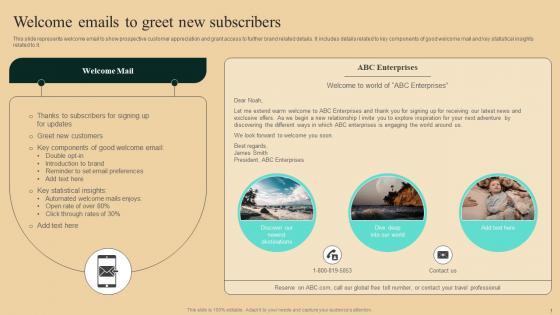 This slide represents welcome email to show prospective customer appreciation and grant access to further brand related details. It includes details related to key components of good welcome mail and key statistical insights related to it. The Guide To Winning Tourism Welcome Emails To Greet New Subscribers Download Pdf is a compilation of the most recent design trends as a series of slides. It is suitable for any subject or industry presentation, containing attractive visuals and photo spots for businesses to clearly express their messages. This template contains a variety of slides for the user to input data, such as structures to contrast two elements, bullet points, and slides for written information. Slidegeeks is prepared to create an impression. This slide represents welcome email to show prospective customer appreciation and grant access to further brand related details. It includes details related to key components of good welcome mail and key statistical insights related to it.