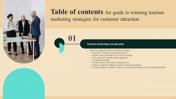 Want to ace your presentation in front of a live audience Our Table Of Contents Guide To Winning Tourism Marketing Strategies For Introduction Pdf Introduction Pdf can help you do that by engaging all the users towards you. Slidegeeks experts have put their efforts and expertise into creating these impeccable powerpoint presentations so that you can communicate your ideas clearly. Moreover, all the templates are customizable, and easy-to-edit and downloadable. Use these for both personal and commercial use. Our Table Of Contents Guide To Winning Tourism Marketing Strategies For Introduction Pdf are topically designed to provide an attractive backdrop to any subject. Use them to look like a presentation pro.
