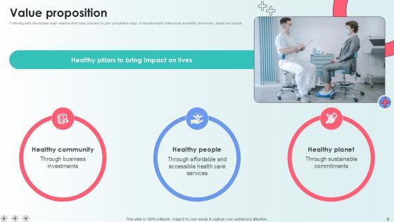 Following slide showcases major reasons that helps company to gain competitive edge. It includes health pillars such as healthy community, planet and people. Explore a selection of the finest Value Proposition Capital Raising Pitch Deck For Health Care Services Ppt Sample here. With a plethora of professionally designed and pre-made slide templates, you can quickly and easily find the right one for your upcoming presentation. You can use our Value Proposition Capital Raising Pitch Deck For Health Care Services Ppt Sample to effectively convey your message to a wider audience. Slidegeeks has done a lot of research before preparing these presentation templates. The content can be personalized and the slides are highly editable. Grab templates today from Slidegeeks. Following slide showcases major reasons that helps company to gain competitive edge. It includes health pillars such as healthy community, planet and people.