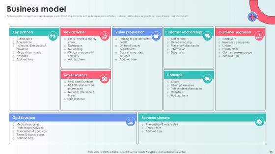 Following slide represents company business model. It includes elements such as key resources, activities, customer relationships, segments, revenue streams, cost structure etc. Boost your pitch with our creative Business Model Capital Raising Pitch Deck For Health Care Services Ppt Powerpoint. Deliver an awe-inspiring pitch that will mesmerize everyone. Using these presentation templates you will surely catch everyones attention. You can browse the ppts collection on our website. We have researchers who are experts at creating the right content for the templates. So you do not have to invest time in any additional work. Just grab the template now and use them. Following slide represents company business model. It includes elements such as key resources, activities, customer relationships, segments, revenue streams, cost structure etc.